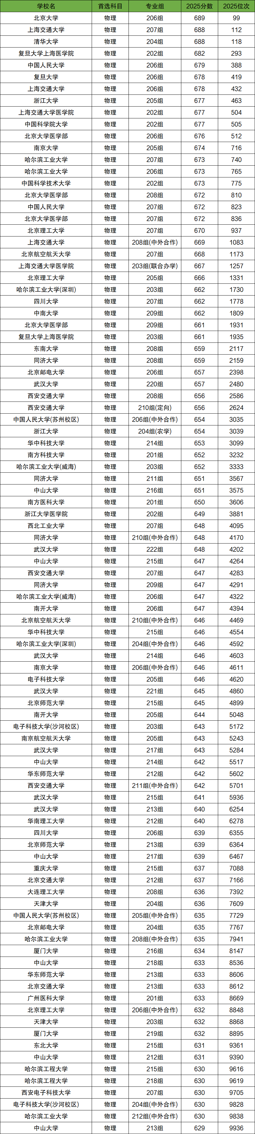 1、物理类前1万名:北京大学、上海交通大学、清华大学