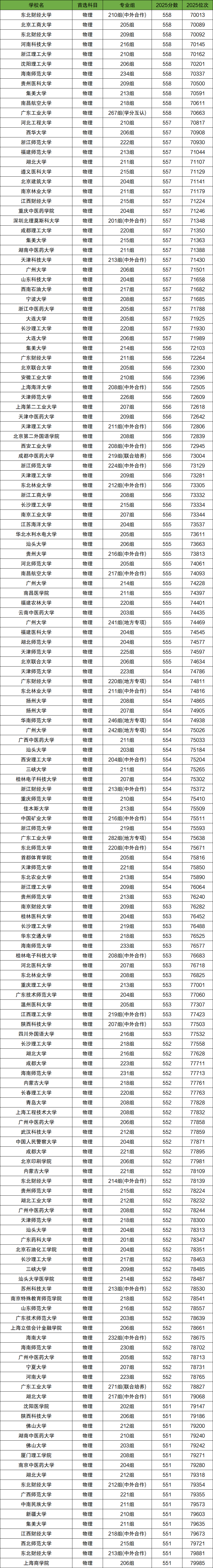 2、物理类7-8万名:东北财经大学、北京工商大学、河南科技大学