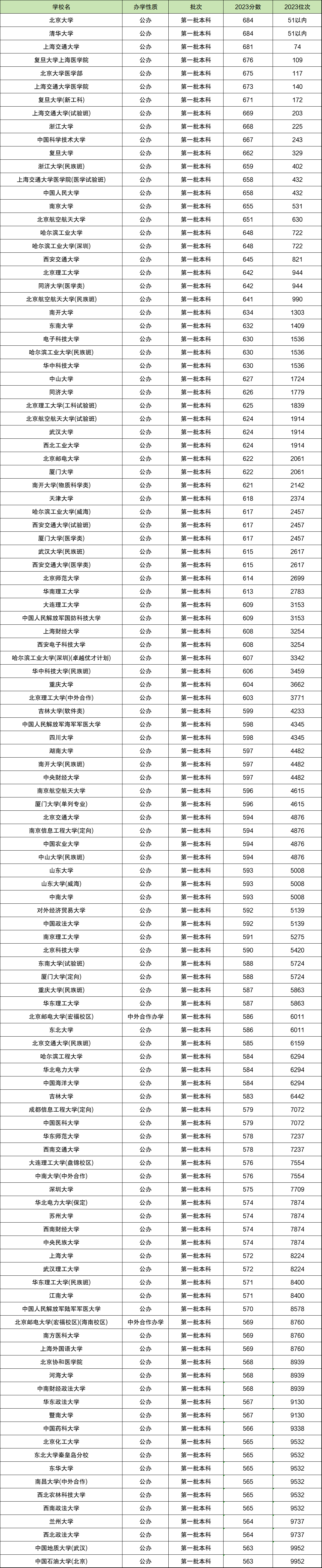 分数最低为中国石油大学(北京)、中国地质大学(武汉),分数线均为563分,对应位次9952位。