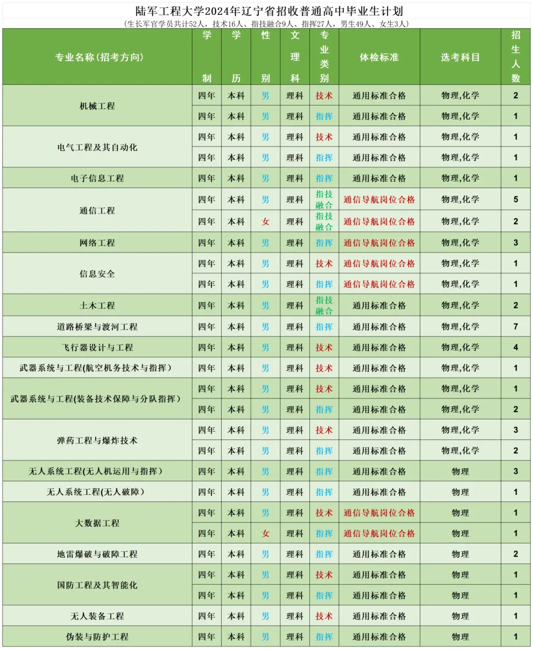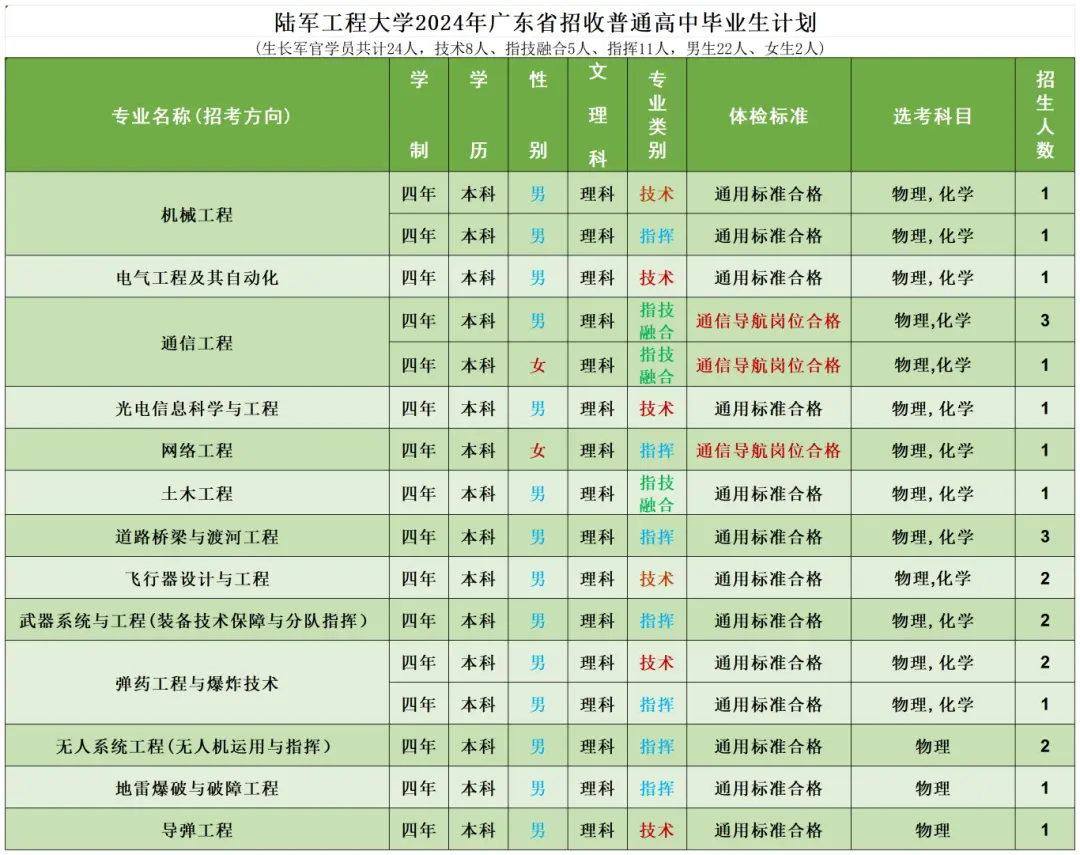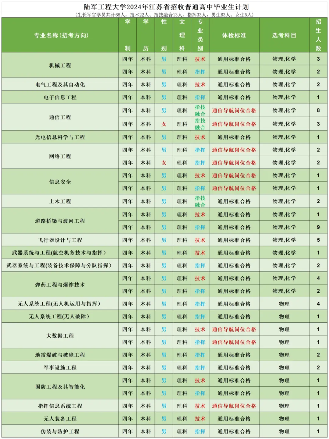 参考2024年的招生情况来看,陆军工程大学招生专业有电子信息工程、通信工程、网络工程等,总招生计划人数为884人,在全国各地最低录取分数线为424分。