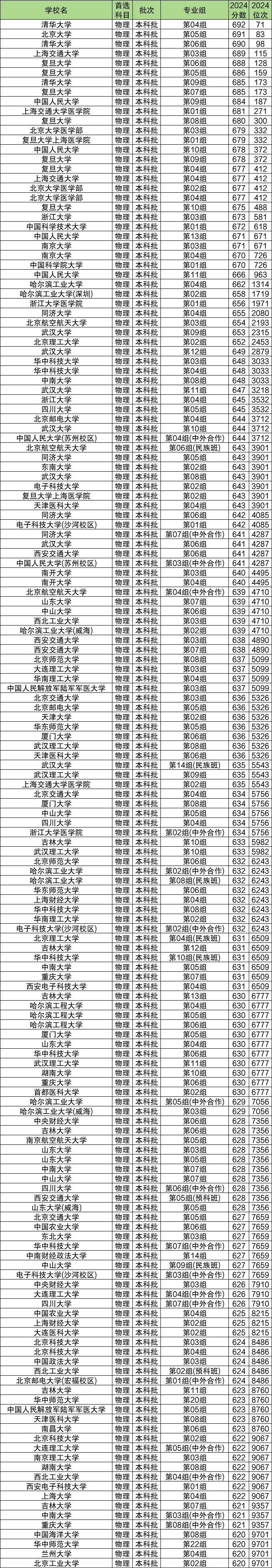 根据湖北省2024年全国大学录取分数线可知,在1万名之前的物理组考生能上的大学专业组有161个,对应的分数为620分~692分,对应位次为9701~71位。