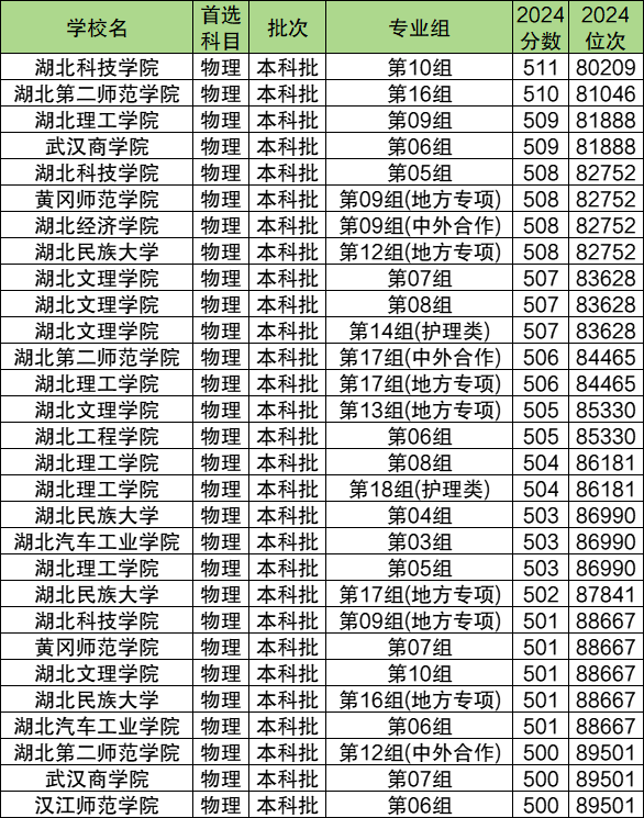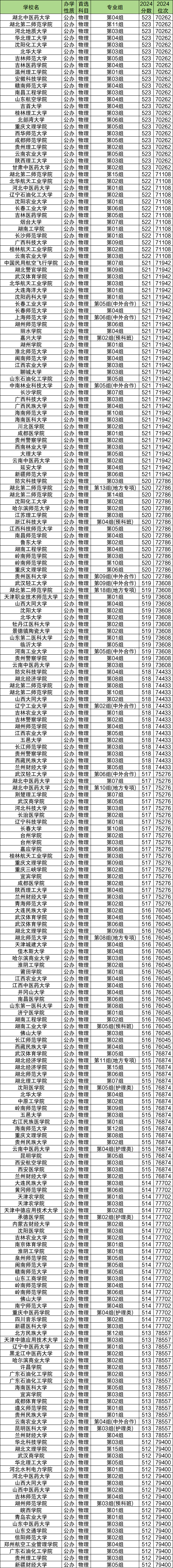 因为本文篇幅有限不能所有分数一一整理,以下将介绍湖北高考物理组排名位次对应大学中前1万名、7-9万名对应的大学。