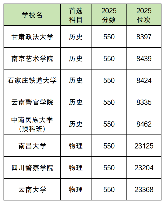 二、550分左右的好大学名单