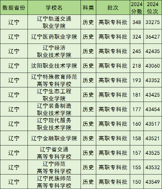 按照沈阳市所有公办大专院校2024年在辽宁省内录取分数线高低排名,为大家整理以下内容。