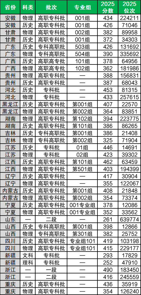 下面是日照职业技术学院2025年录取分数线一览表(普通批):