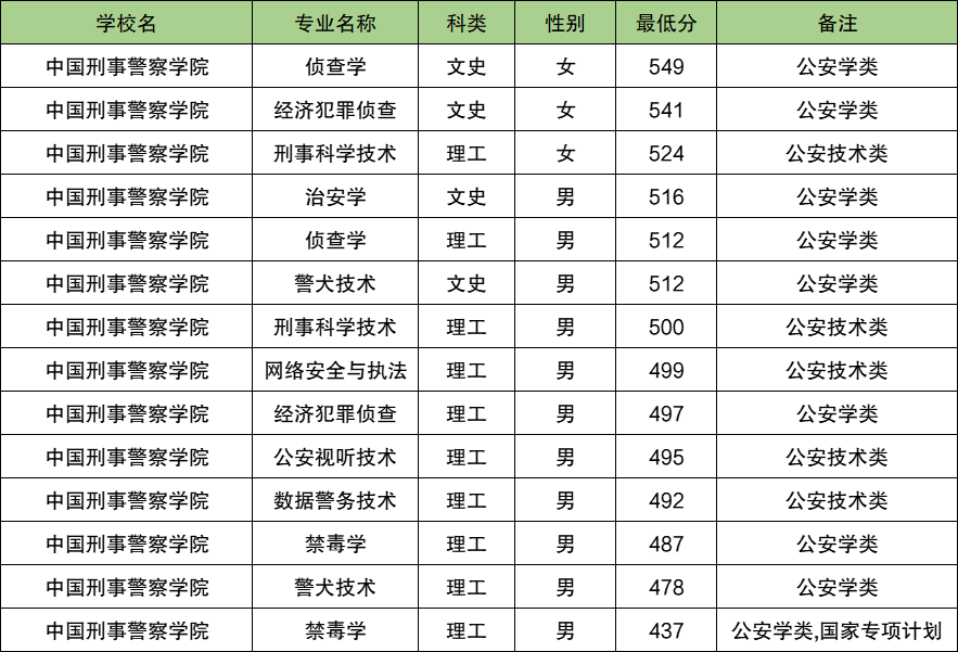 7、中国刑事警察学院:在青海省文科最低512分、理科最低437分。