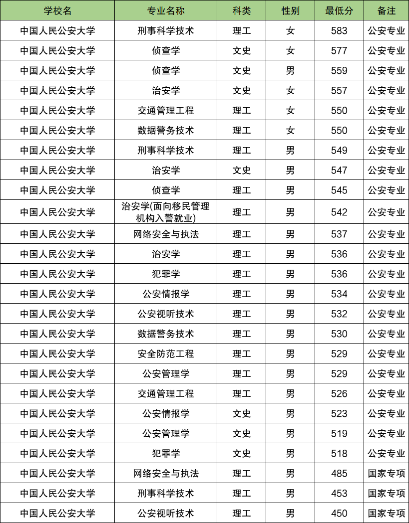 | 中国人民警察大学 | 理科 | 女 | 521 | 公安类 |
