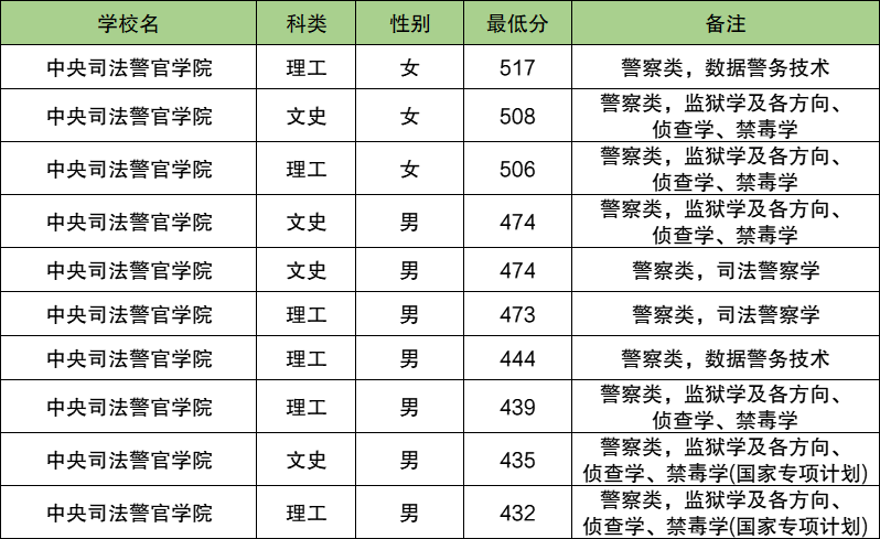 6、中央司法警官学院:在青海省文科最低435分、理科最低432分。