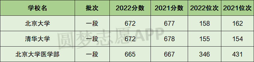 根据山东省教育考试院公布的2022年山东高考本科批分数线,圆梦志愿为大家整理了清华大学、北京大学在山东省的所有分数线,以及清华大学、北京大学近两年在山东省的录取位次。具体数据见下图: