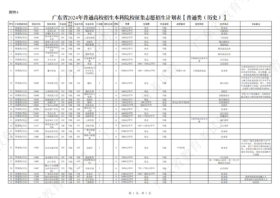 在广东普通类本科批征集志愿(历史类)中,有大连海事大学、吉首大学、北华大学、广西师范大学、惠州学院等院校。