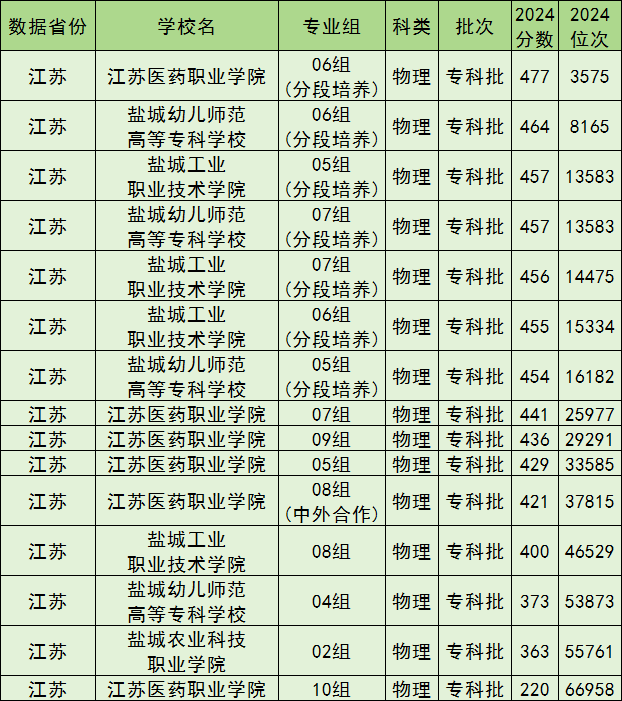 按照盐城市所有公办大专院校2024年在江苏省内录取分数线高低排名,为大家整理以下内容。