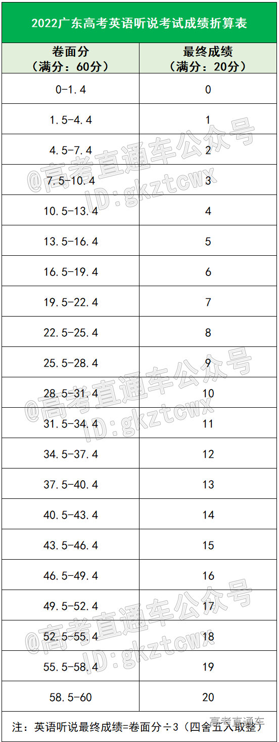 二、广东英语听说考试分数折算