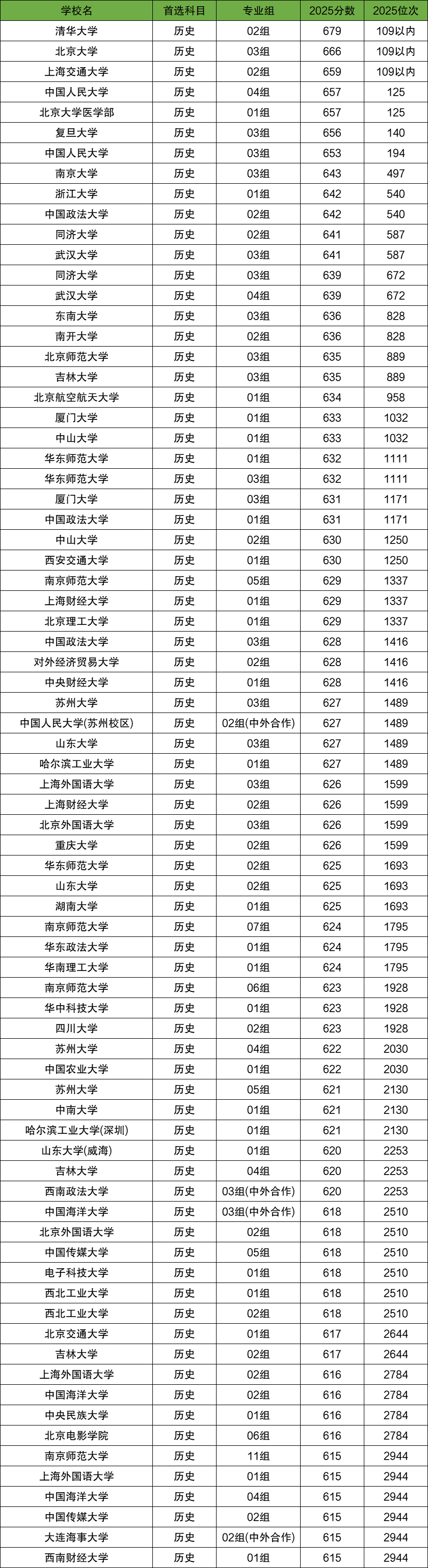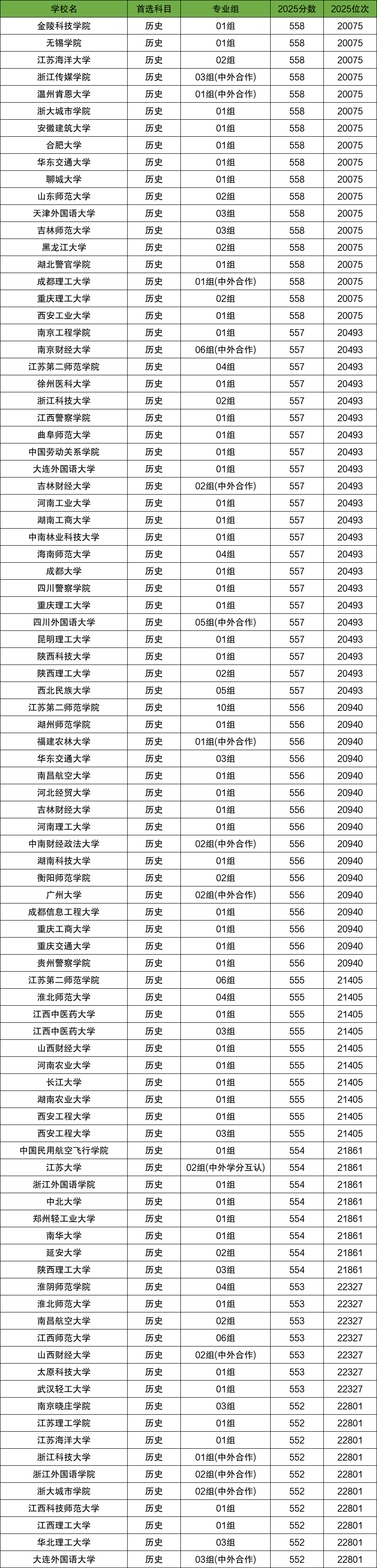 二、江苏高考历史组名次对应院校