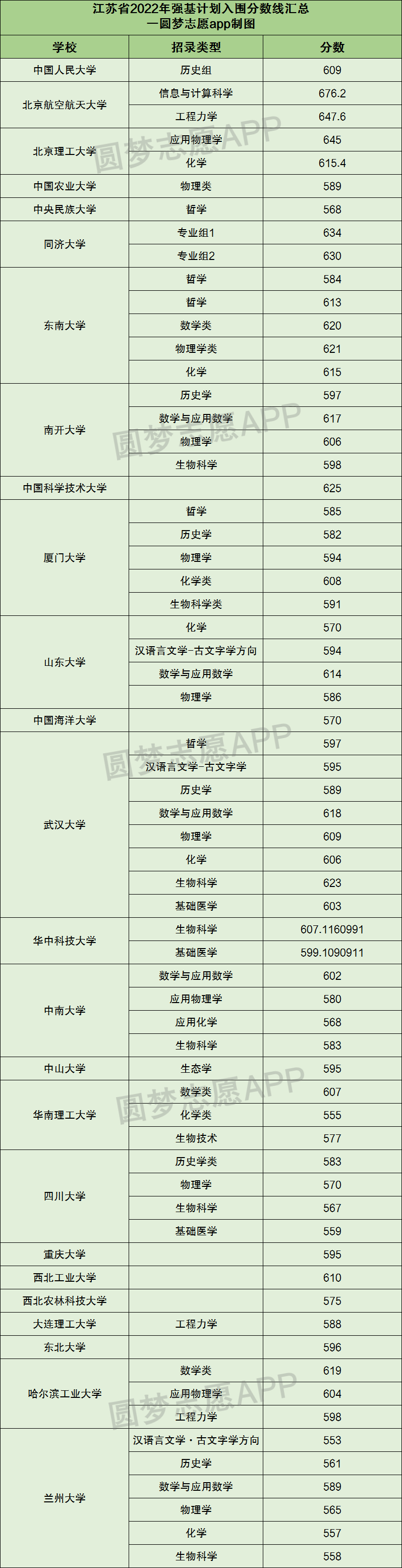 以下为20余所高校在江苏的强基计划入围分数线汇总表: