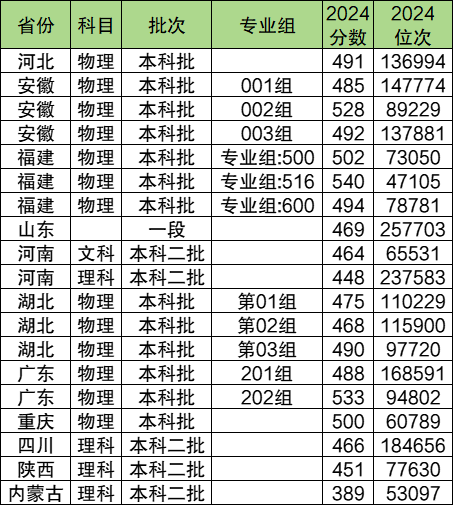 2、2024 年新乡医学院三全学院在全国部分省份分数线