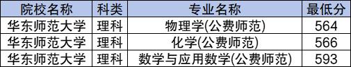 学校国家专项计划理科最低分数线是564分,对应的招生专业是物理学(公费师范)。