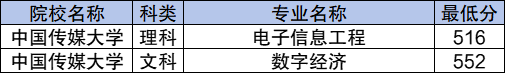 学校国家专项计划文科最低分数线是552分,对应的招生专业是数字经济;理科最低分数线是516分,对应的招生专业是电子信息工程。