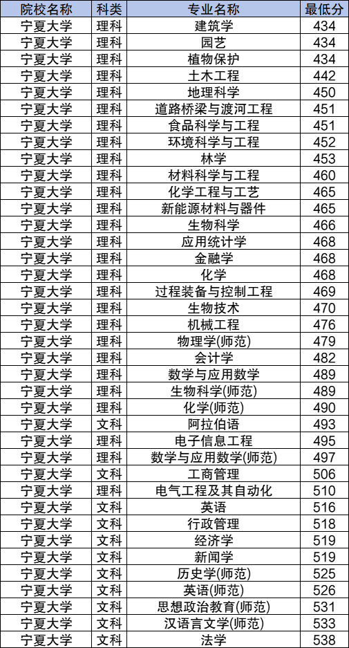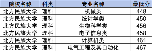 10、北方民族大学:理科最低448分