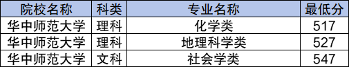 学校国家专项计划文科最低分数线是547分,对应的招生专业是社会学类;理科最低分数线是517分,对应的招生专业是化学类。