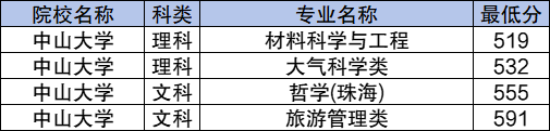 7、中山大学:文科最低555分,理科最低519分