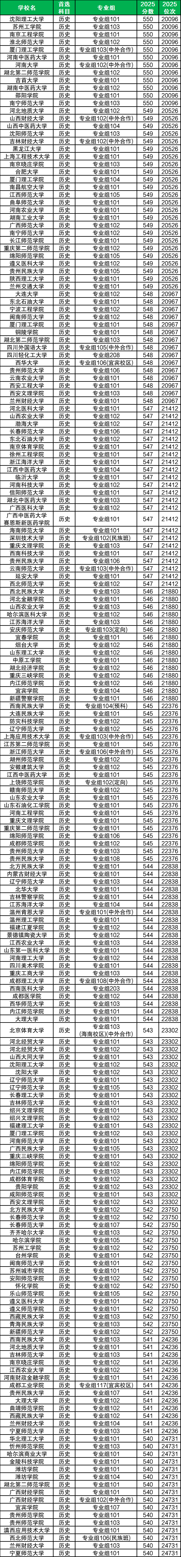 2025年四川省高考历史类成绩在2万名到2.5万名的考生能上的学校有151所、200个专业组,对应的分数为540分~550分,具体录取位次范围为20096名~24731名之间。