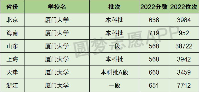 在山东、上海,厦门大学的分数线在600分之下。