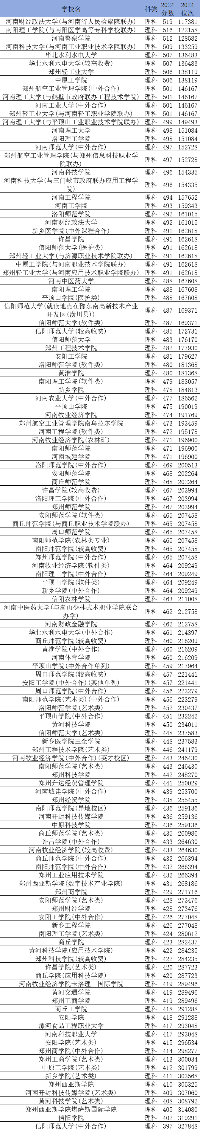 以下为2024年河南理科所有二本大学分数线(可滑动查看):