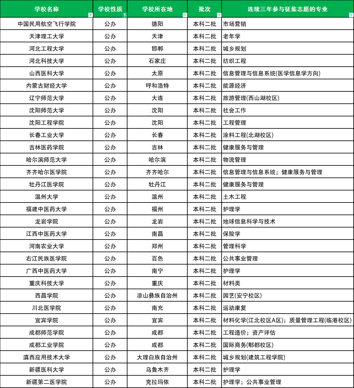 本文以四川省理科招生数据为例,为大家列举连续3年参加了四川理科征集志愿补录的公办二本大学名单。