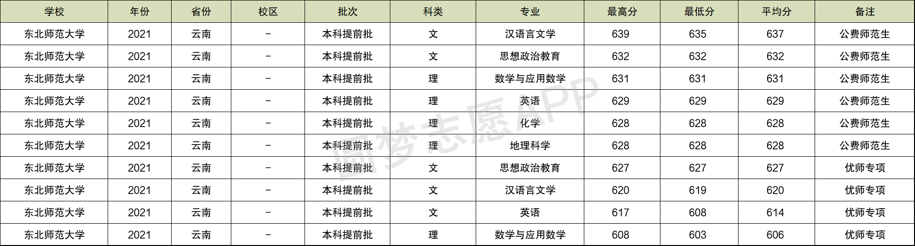 2021年东北师范大学公费师范生在云南的最低分数线为:文科:608分;理科:603分。