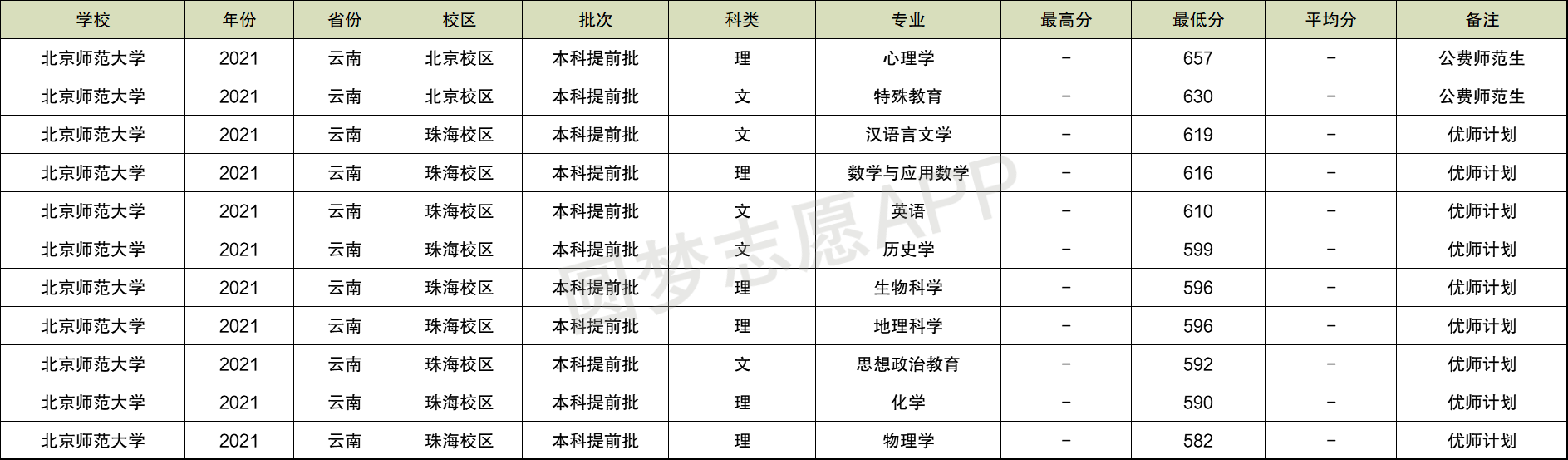 2021年北京师范大学公费师范生在云南的最低分数线为:文科:592分;理科:582分。