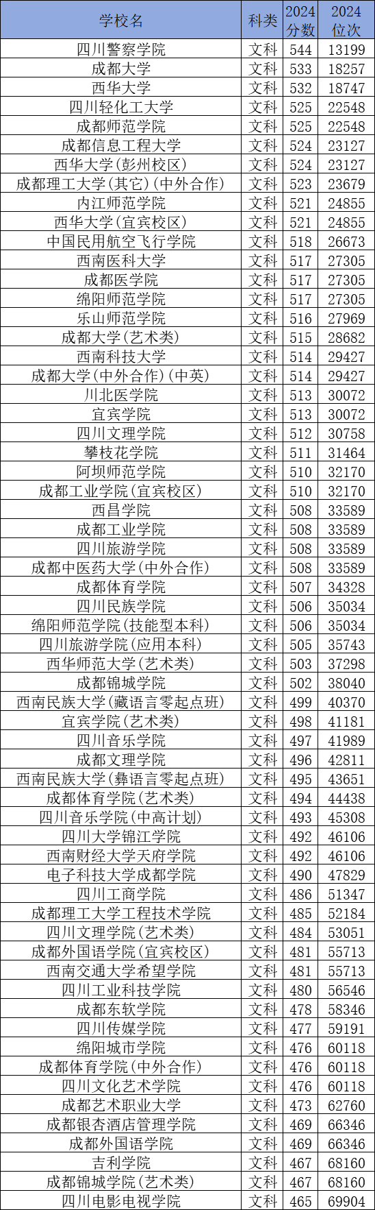 以下为2024年四川文科所有二本大学分数线(可滑动查看):