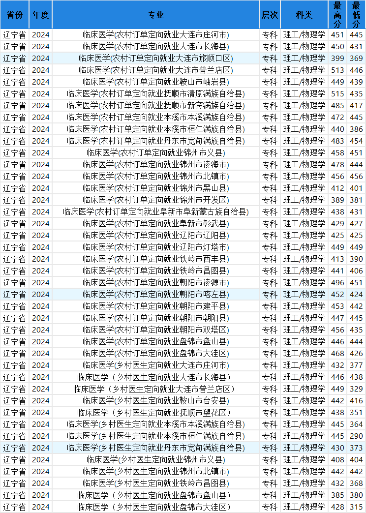 三、辽宁2024年定向医学生录取分数线