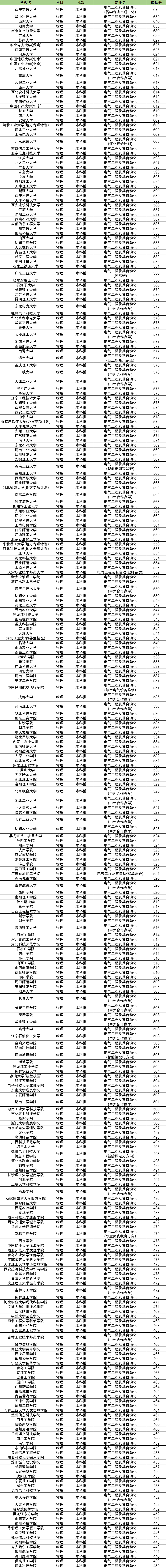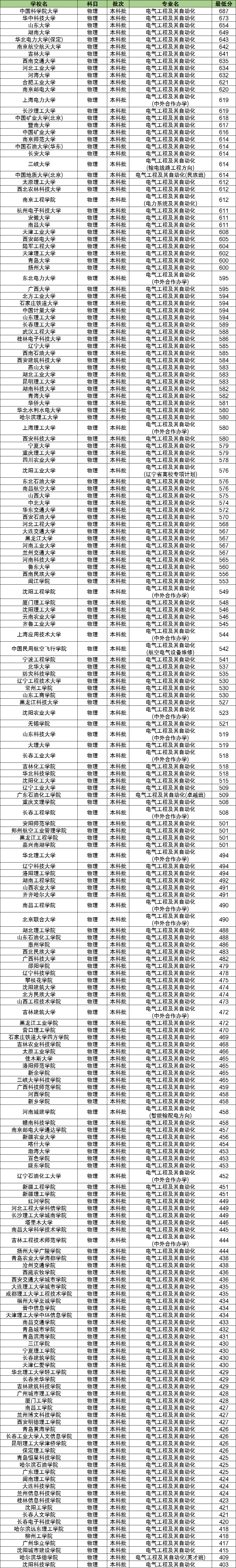 下表为2023年全国大学电气工程及其自动化专业在河北物理科目的最低分数排名。