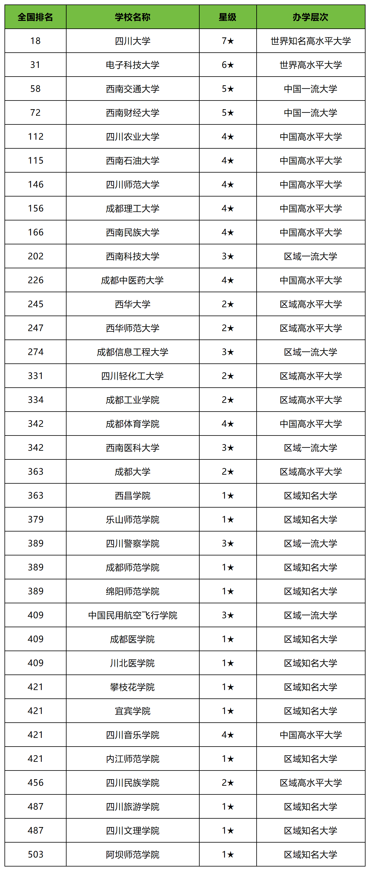 二、四川公办本科大学排名