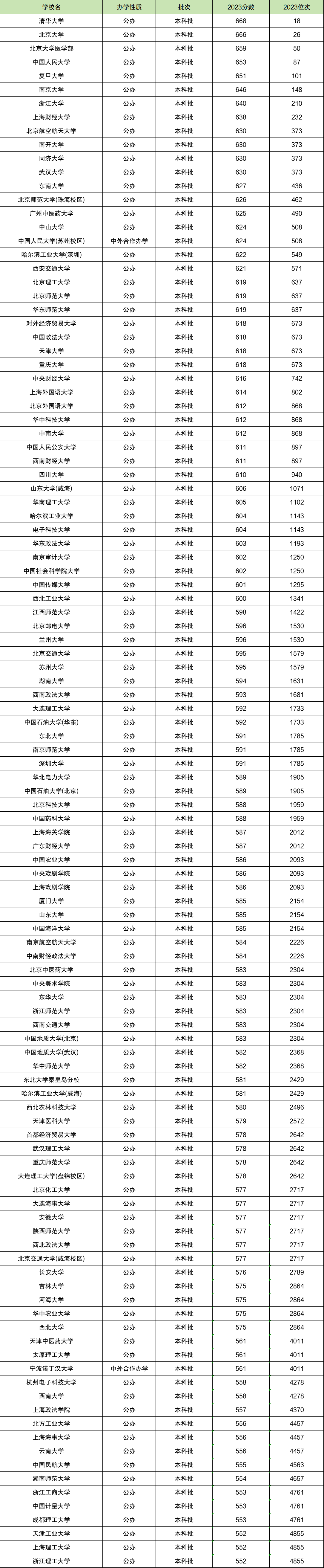 收分最低的是华南理工大学、北京外国语大学2所院校,最低位次为714位,分数线为634分。