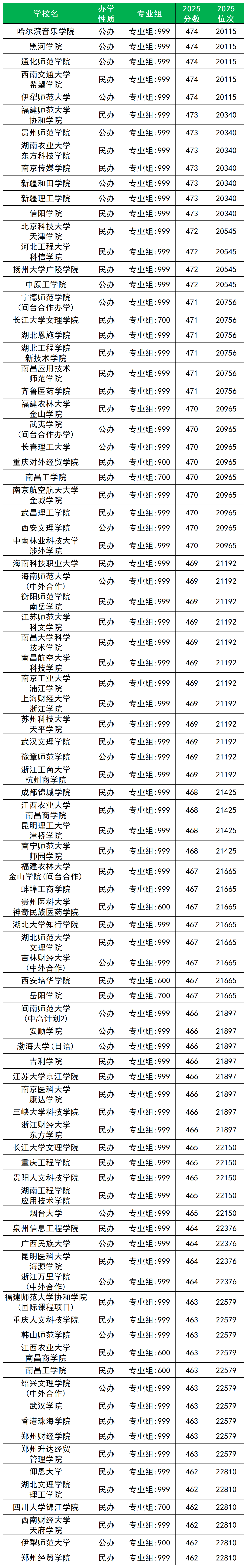 在此范围内,收分最高的是哈尔滨音乐学院999组、黑河学院999组等5个院校专业组,最低位次为20115位,最低分为474分;