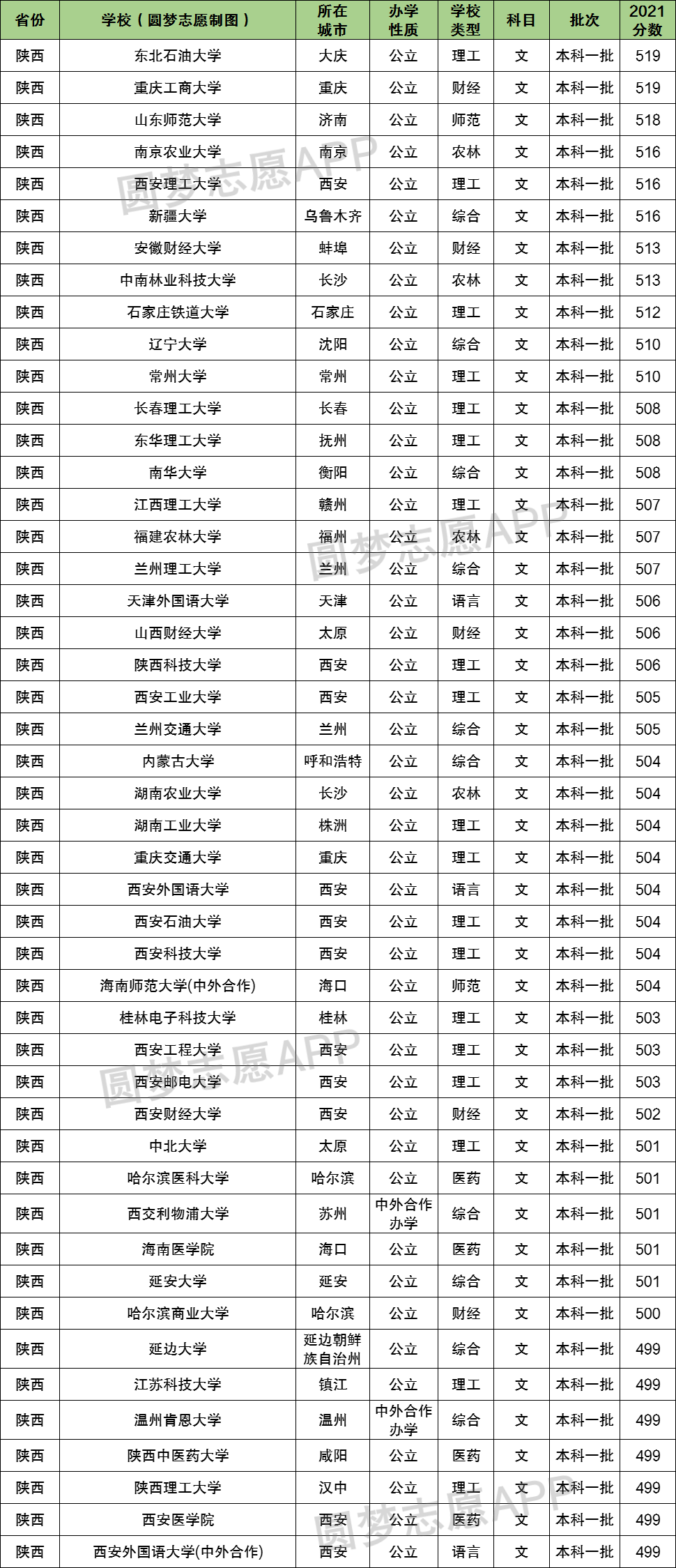 ③总结:在陕西省只要超过一本线,无论文理科都能上一本大学。