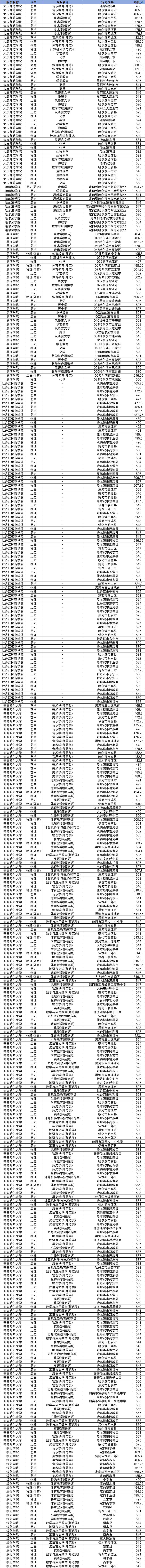 黑龙江地方(省属)公费师范生的分数线比较复杂,同一院校面向不同的县(区)都有不同的分数,所以本文就整理出各院校各公费师范生专业组分数线,供大家参考。