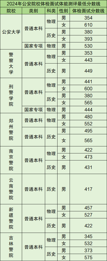 2024年公安警察院校类面试体检分数线陆续公布!如吉林省物理类345分、历史类373分;江苏省历史类500分、物理类537分;河南文科432分、理科429分。本文为大家整理汇总多个地区公安院校面试体检线,供查阅。