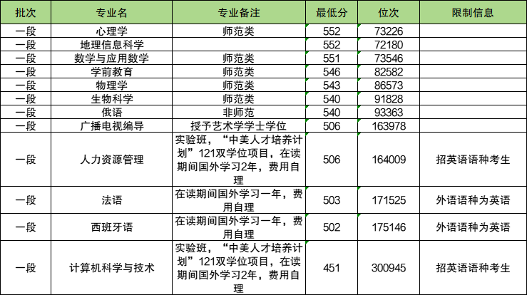 英语专业(师范类):最低564分。外语语种为英语