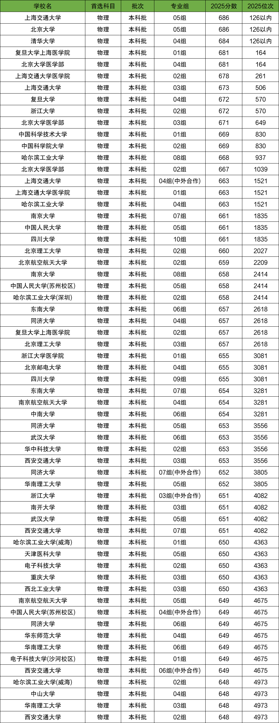 3、江苏物理组1-5000名对应大学:上海交通大学、北京大学、清华大学
