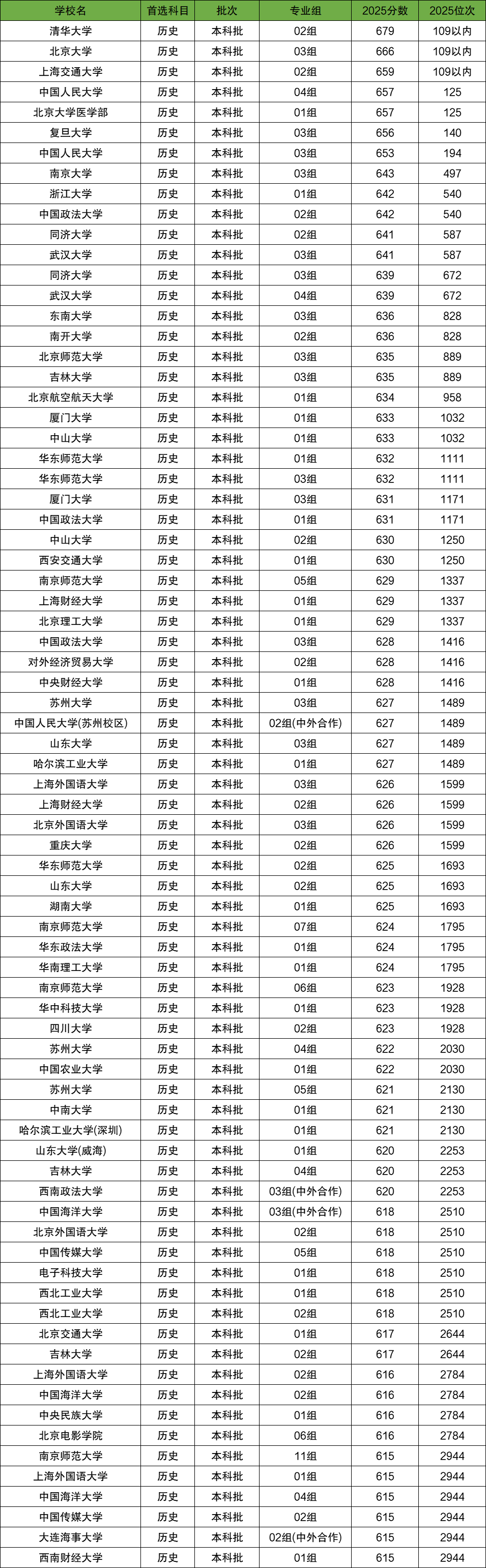 2025江苏省高考排名位次对应大学分别是:历史组1250位对应中山大学02组(630分);物理组3081位对应四川大学09组(655分),更多分数对应位次以及大学的情况请看下文。