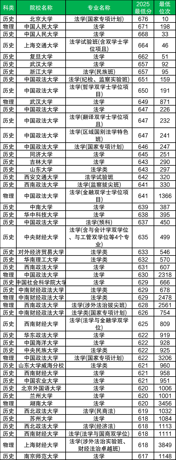 本文将结合2025分数线排名表和软科大学排名表,整理法学专业最好50所大学排名及分数线,以供2026届考生参考。