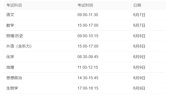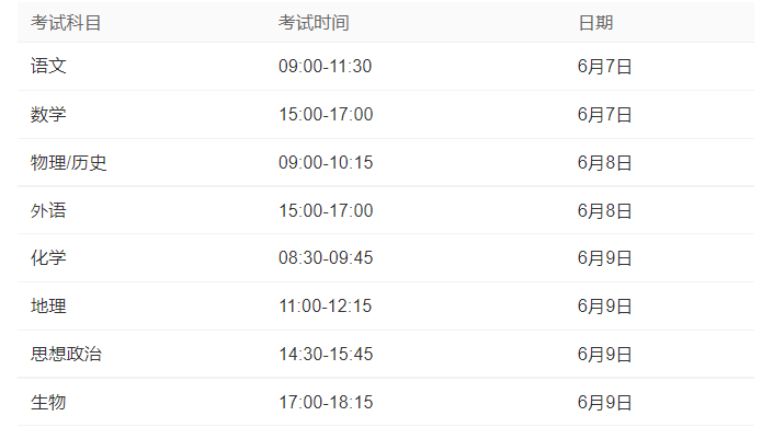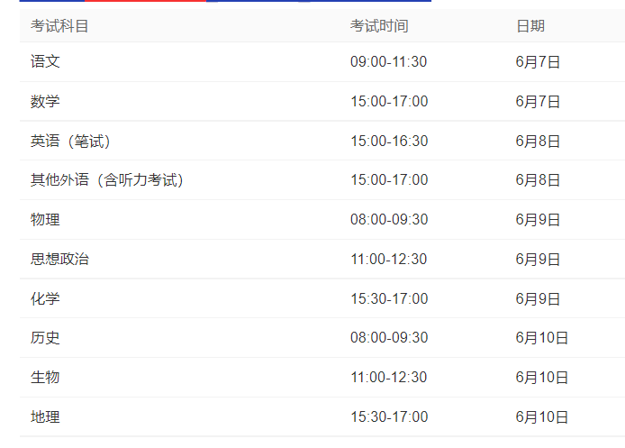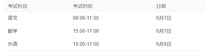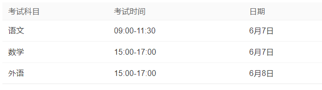 西藏是在以下考试安排的基础上,多了一项藏语文考试,考试具体时间是6月9日9:00—11:30
