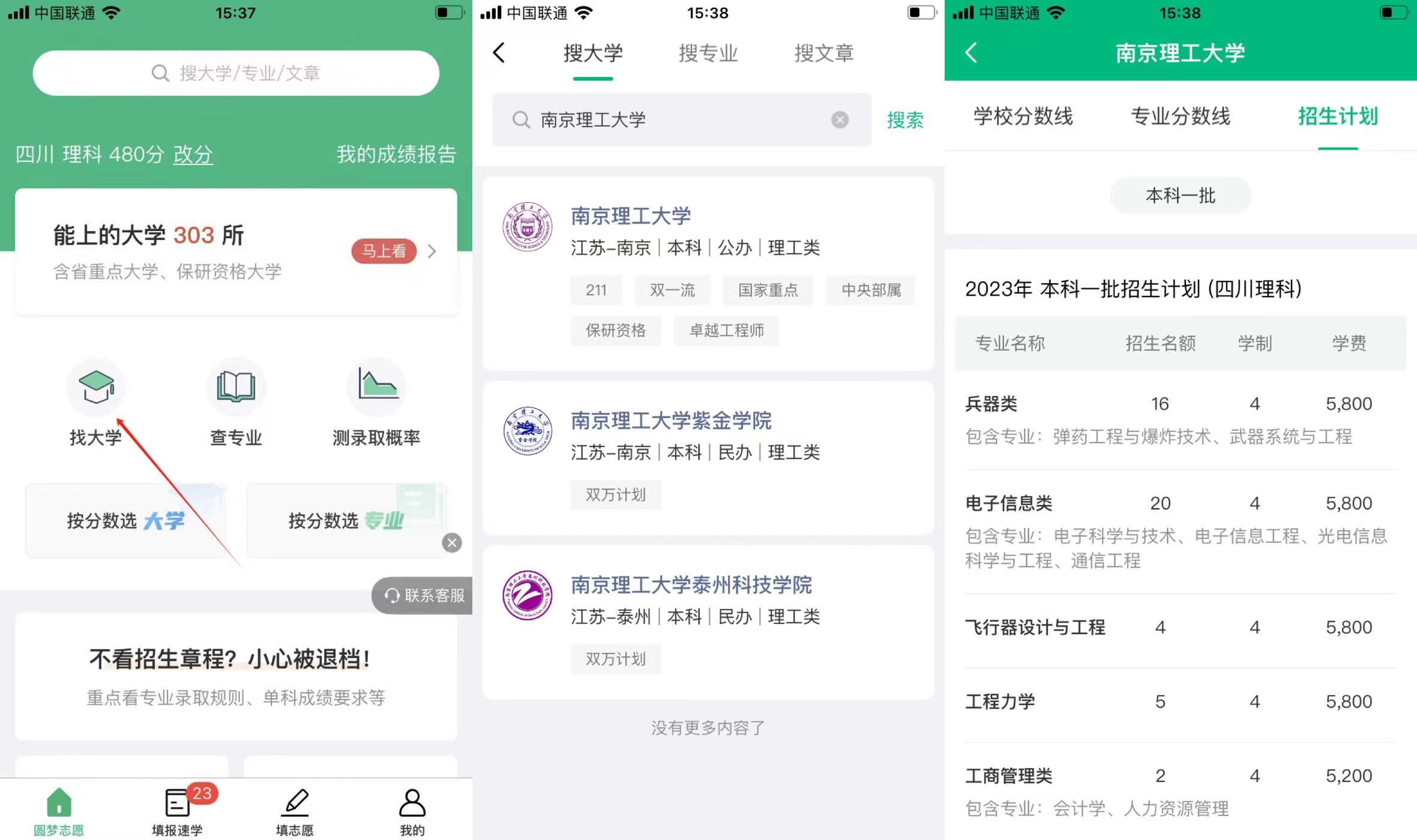 圆梦志愿APP各高校招生计划查询具体操作图解流程如下: