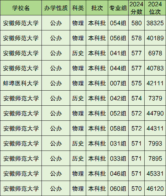 安徽省历史类570分左右的大学有1所,都在本科批录取;物理类570分左右的大学有2所,都在本科批录取。