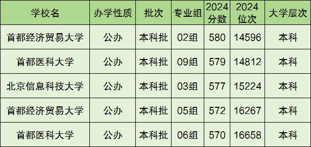 北京市570分左右能上的大学有3所, 全部在本科批录取,均为本科层次院校。