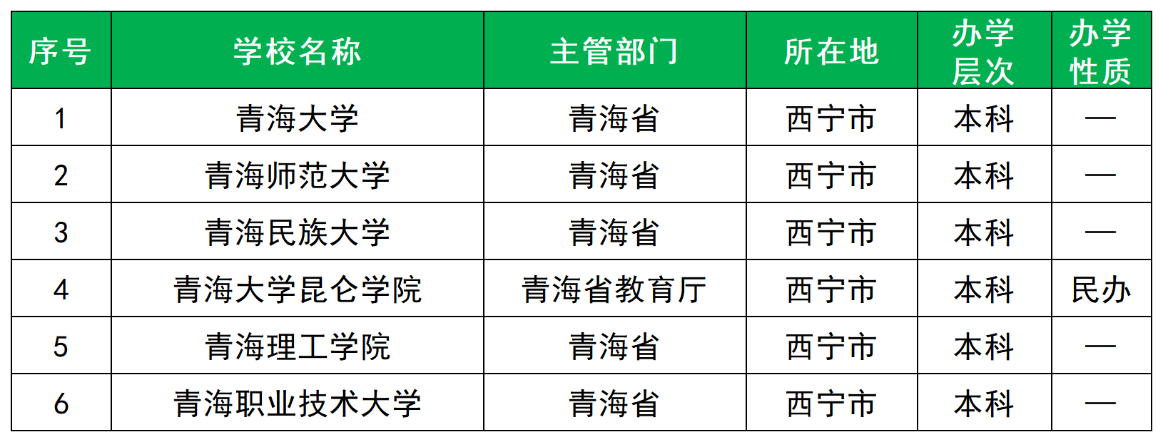 青海共有6所本科大学,截止2025年6月20日,青海的本科大学名单整理如下,供大家参考。