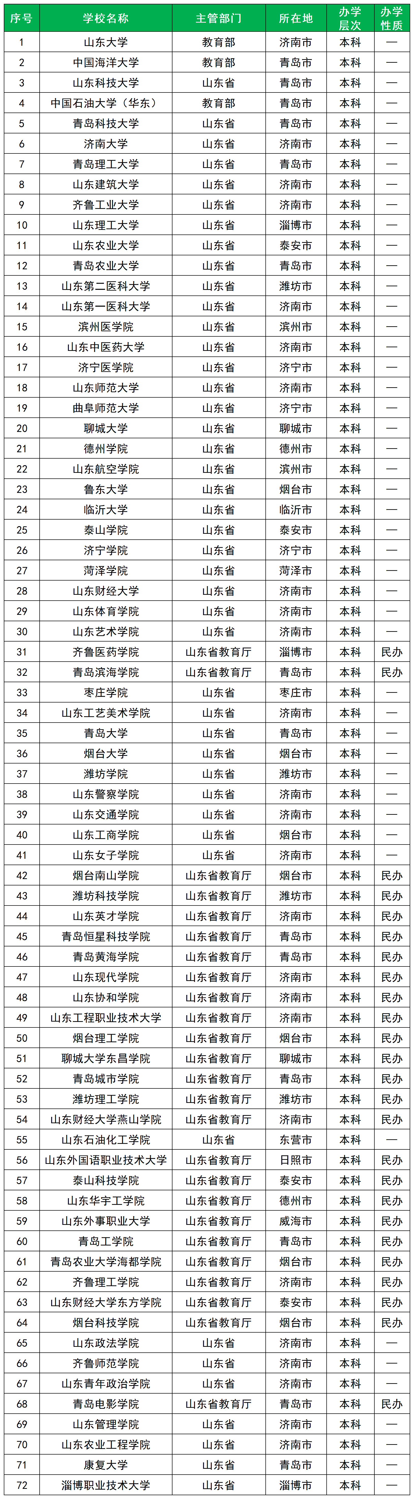 山东共有72所本科大学(并未将分校纳入其中),截止2025年6月20日,山东的本科大学名单整理如下,供大家参考。