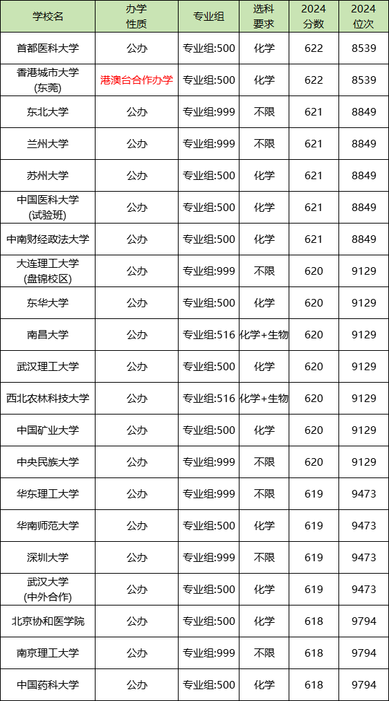 另外省外比较好的有首都医科大学(500组)622分、东华大学(500组)620分、中国药科大学(500组)618分等。